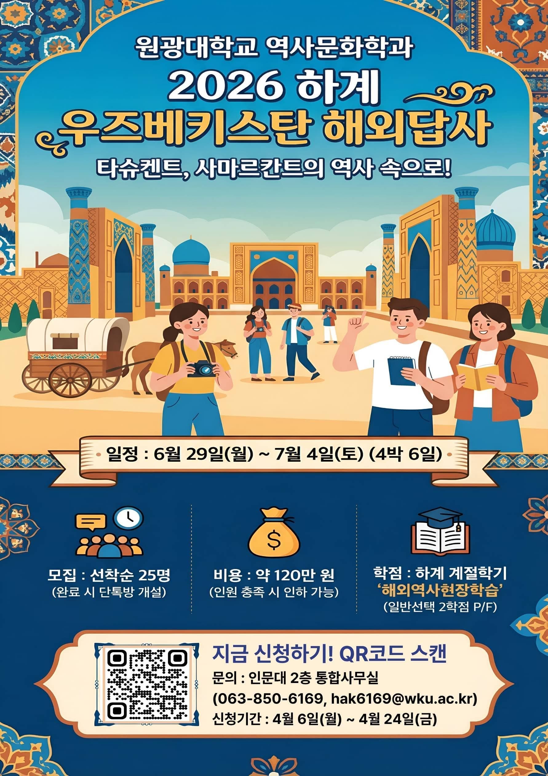 안녕하십니까, 역사문화학과입니다. 2026학년도 하계 해외답사를