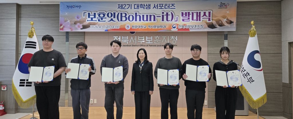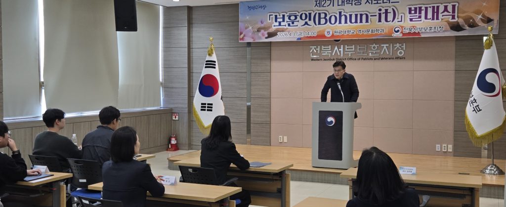2026년 4월 3일(금), 전북서부보훈지청에서 국가보훈부 대학생 서포터즈 제2기 ‘보훈잇(Bohun-it)’ 발대식이 진행되었습니다.
