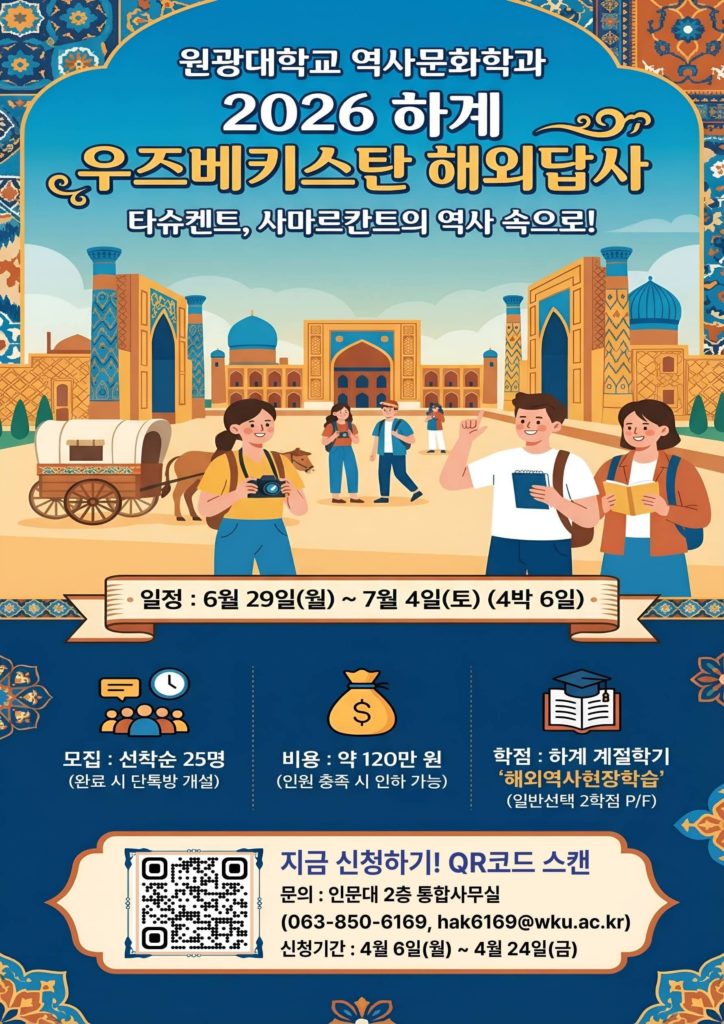 2026학년도 하계 해외답사를 아래와 같이 운영하오니 관심 있는 학생들의 많은 참여 바랍니다.